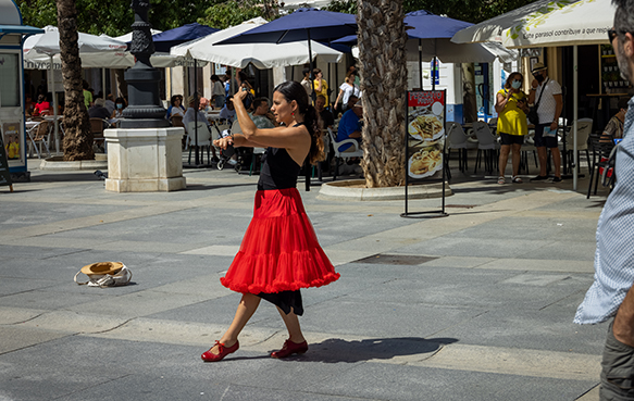 Fünf Tag Madrid (fünf Nächte) waren um, nun war es Zeit für Andalusien. Wir fuhren mit dem Zug bequem in rund vier Stunden südwärts. Reiner und ich bekamen Einzelsitze, die durch einen Gang getrennt waren. Als wir aus dem Zug ausstiegen, kam in mir ein Gefühl von "daheim" auf. Ich brauchte kein Schild lesen, sondern konnte gleich links aus dem Gebäude und links zum Taxistand marschieren, wo ich eine Warteschlange erwartete. Doch wir hatten Glück und erwischten gerade noch das letzte Taxi. Die nachfolgenden Gäste mussten warten, bis die ersten Fahrzeuge von ihren Fahrten zurück kamen. Der Taxifahrer zeigte uns eine unserer Lieblingsbar und wir schwärmten gemeinsam von Chicharrones und Queso.